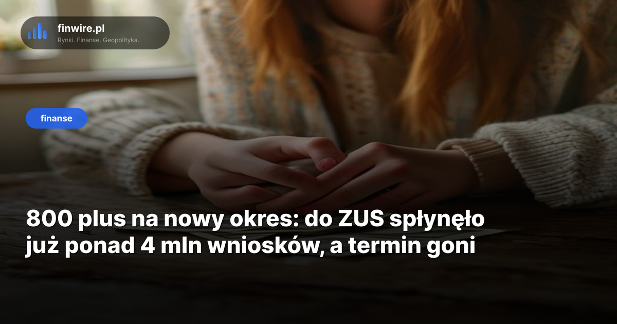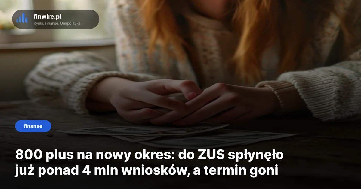 Ponad 4,3 mln wniosków o 800 plus na nowy okres świadczeniowy trafiło już do ZUS - wg danych Zakładu zaktualizowanych na połowę kwietnia 2026. Tempo podobne do ubiegłorocznego, z jedną różnicą: rodzice, którzy złożą wniosek po 30 kwietnia, na pierwszy przelew poczekają nie do czerwca, tylko do końca lipca albo sierpnia.