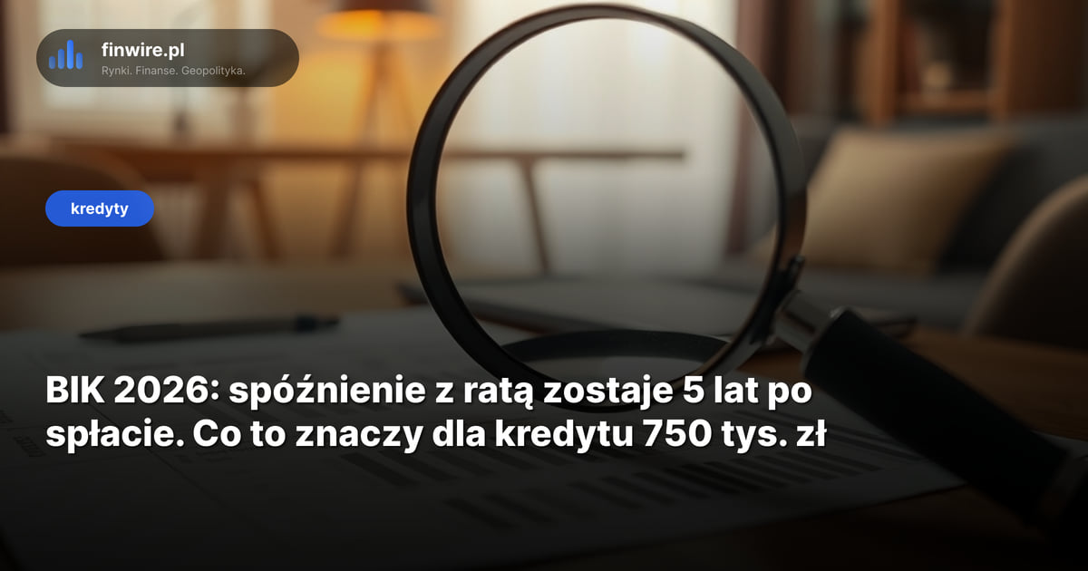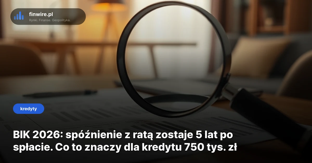 Dwie spóźnione raty pożyczki ratalnej sprzed dwóch lat mogą Cię kosztować odrzucenie wniosku o kredyt hipoteczny 750 tys. zł w 2026 roku. BIK przechowuje takie wpisy nawet 5 lat po spłacie - bez Twojej zgody i bez możliwości łatwego usunięcia. Stan na kwiecień 2026.