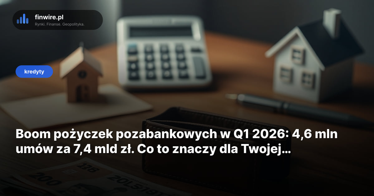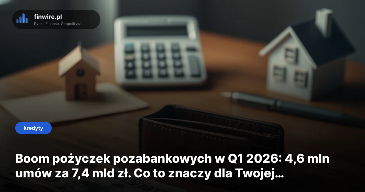 W pierwszym kwartale 2026 firmy pożyczkowe udzieliły 4,6 mln pożyczek o łącznej wartości 7,4 mld zł. To wzrost o 15,2% w liczbie i 21,1% w wartości rok do roku - wg danych BIK. Dla Piotra, który za 6-12 miesięcy planuje wniosek o kredyt hipoteczny 750 tys. zł, ten boom to nie ciekawostka, tylko realne ryzyko obniżenia zdolności kredytowej o 100-130 tys. zł.