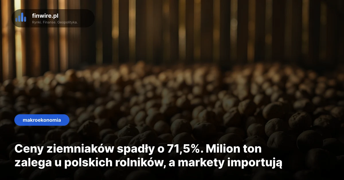 Od 700 tysięcy do miliona ton ziemniaków zalega w polskich gospodarstwach. Ceny skupu są o 71,5% niższe niż rok temu - alarmuje Tomasz Bieńkowski, prezes Polskiej Federacji Ziemniaka. A sieci handlowe spokojnie sprowadzają kartofle z Egiptu, Izraela i Francji. Stan na kwiecień 2026.