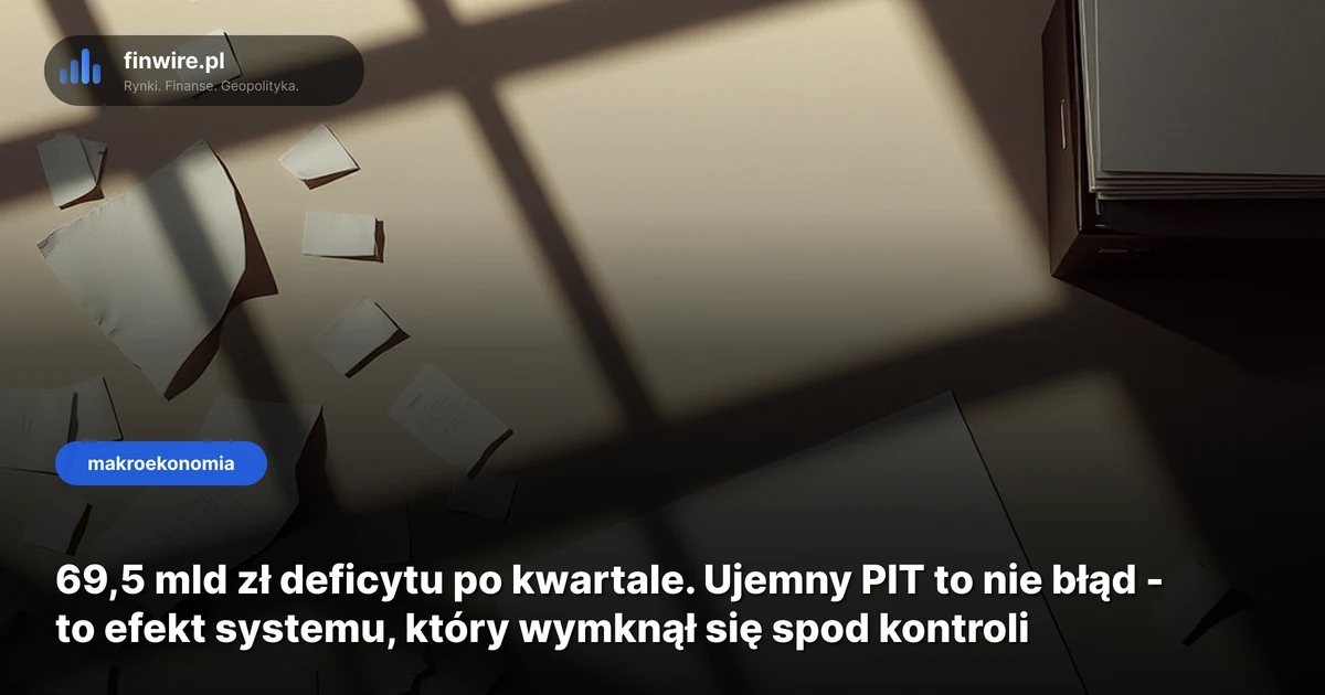 69,5 mld zł na minusie po zaledwie trzech miesiącach roku. Stan na kwiecień 2026 - budżet państwa po pierwszym kwartale wygląda tak, jakby ktoś zostawił otwartą kasę i wyszedł na lunch. Ale najciekawsza nie jest sama dziura budżetowa, tylko jeden wskaźnik: wpływy z PIT okazały się ujemne. Tak - fiskus oddał więcej niż zebrał.