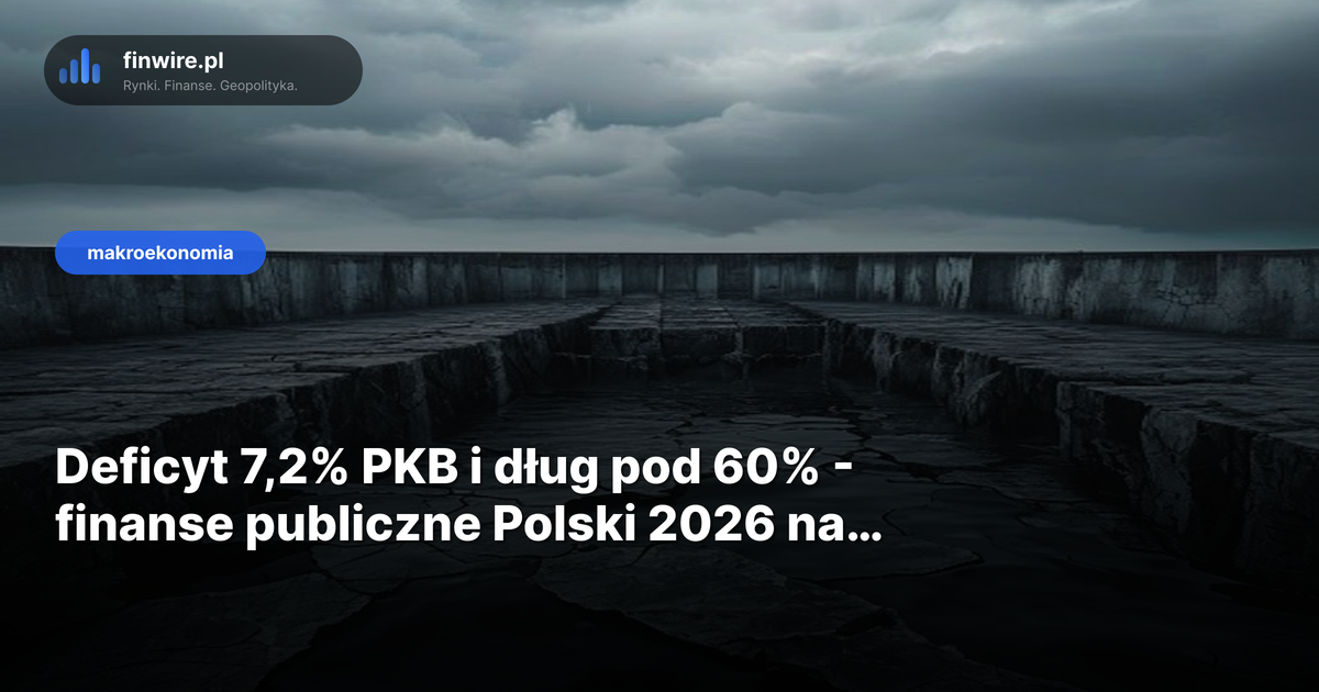 Deficyt sektora finansów publicznych za 2025 rok wyniósł 7,2% PKB - to drugi najwyższy wynik w historii Polski. Dług publiczny sięgnął 59,7% PKB według wstępnego szacunku GUS. Stan na kwiecień 2026: po pierwszym kwartale bieżącego roku dziura budżetowa urosła do 69,5 mld zł, czyli 25,6% rocznego limitu - wynika z danych Ministerstwa Finansów.