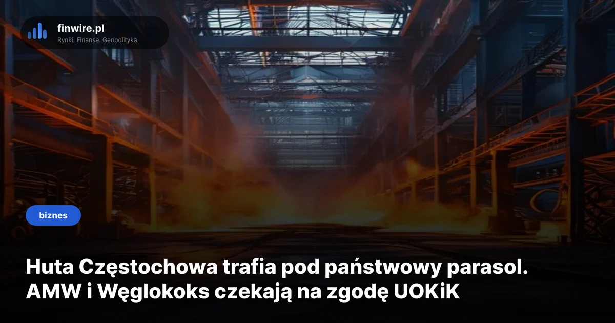 Państwo domyka przejęcie jednej z najważniejszych hut w kraju. Węglokoks i Agencja Mienia Wojskowego zgłosiły do UOKiK zamiar utworzenia wspólnego przedsiębiorstwa na bazie Huty Częstochowa - z jasnym celem: zasilić polską zbrojeniówkę blachami pancernymi. Stan na kwiecień 2026.