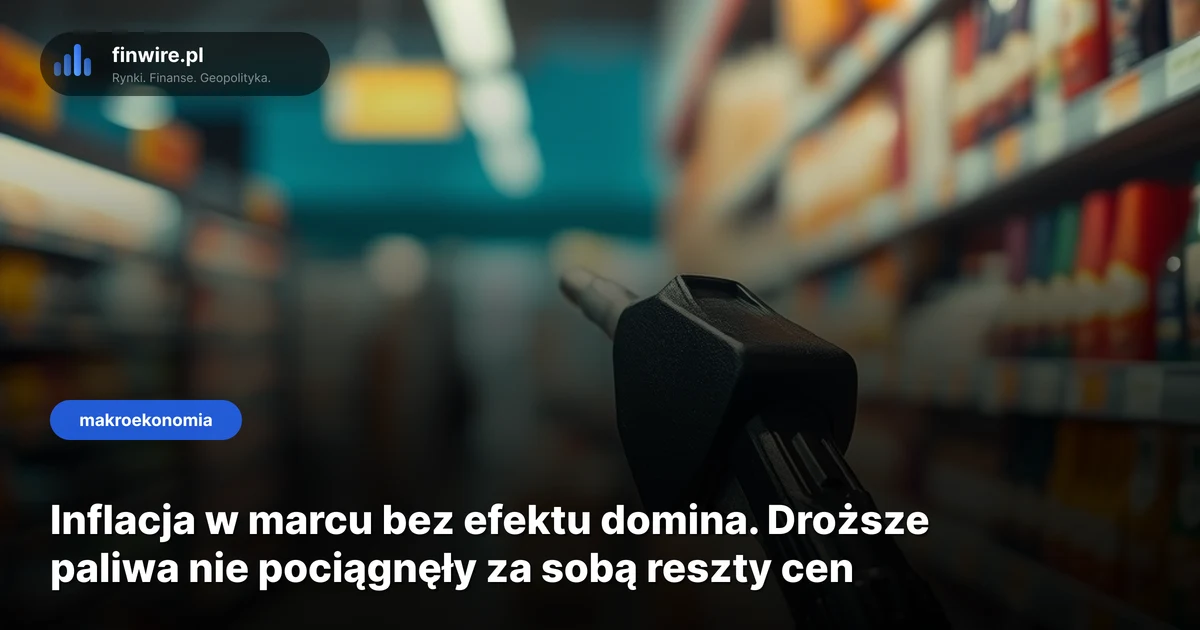 Marcowy odczyt inflacji wg danych GUS potwierdza scenariusz, który część ekonomistów sygnalizowała już na początku roku: jednorazowy szok paliwowy nie musi oznaczać spirali cenowej. Benzyna Pb95 i olej napędowy zaliczyły wyraźne wzrosty - po części efekt wyższych cen ropy wynikających z napięć na Bliskim Wschodzie, po części korekta akcyzy. Ale to, co wydarzyło się (a raczej nie wydarzyło się) w pozostałych kategoriach, jest moim zdaniem ważniejsze od samych paliw.
