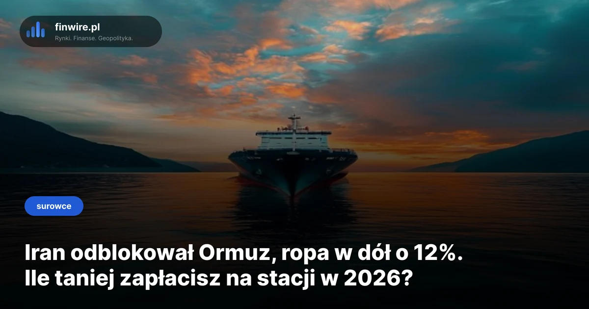 Rynek jeszcze wczoraj zakładał, że Teheran będzie grać blokadą do ostatniego momentu. Mylił się. A raczej - Iran zagrał inaczej niż w 2019 i 2024 roku, kiedy podobne napięcia kończyły się tygodniami zamkniętego szlaku i ropą powyżej 100 dol.