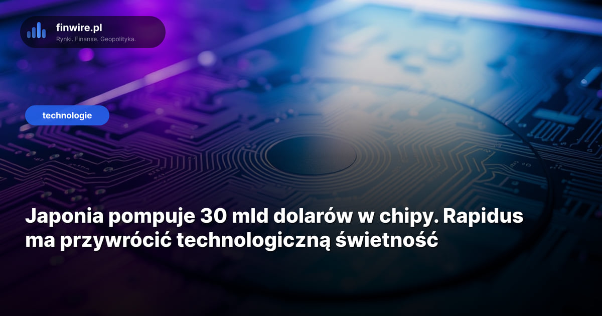 Japonia zapowiedziała wsparcie sektora półprzewodników kwotą przekraczającą 30 mld dolarów do końca dekady - największy pakiet przemysłowy od czasu boomu lat 80. Centralnym elementem tej strategii jest Rapidus, spółka założona w 2022 roku przez Toyotę, Sony, NTT, SoftBank i kilka innych japońskich gigantów, która ma produkować chipy w procesie 2 nm w fabryce na Hokkaido. Stan na kwiecień 2026 - pilotażowa produkcja już ruszyła, masowa zapowiadana na 2027 rok.