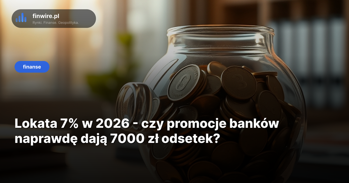 Lokata 7% przez trzy miesiące na 10 000 zł da Ci dokładnie 142 zł netto - po Belce. Reklama mówi o nawet 7000 zł odsetek, ale to wynik z odmiennej kalkulacji, w której nikt nie rozkłada warunków na czynniki pierwsze. Stan na kwiecień 2026.