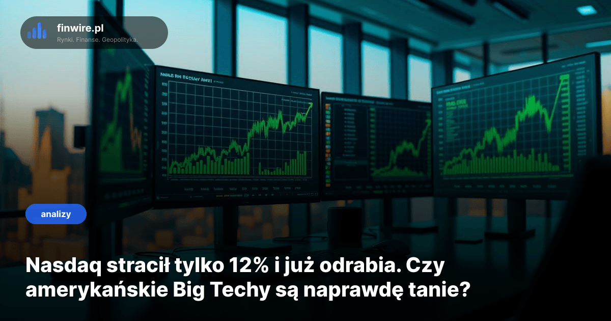 Nasdaq Composite spadł o 12% w ciągu trzech miesięcy - i to ma być korekta? Dla porównania: w 2022 roku indeks technologiczny stracił ponad 33%, a w 2024 podobny epizod kosztował inwestorów ponad 20%. Stan na kwiecień 2026 - dwie trzecie tego i tak skromnego spadku spółki już odrobiły.