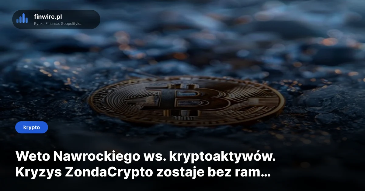 Nawrocki argumentuje, że ustawa była „niedopracowana" i „nadmiernie restrykcyjna wobec krajowych podmiotów". Brzmi znajomo - to standardowa narracja przy każdym wecie. Moim zdaniem prezydent wybrał konflikt polityczny z rządem Donalda Tuska ponad interes inwestorów indywidualnych, a sprawa ZondaCrypto jest wygodnym pretekstem.
