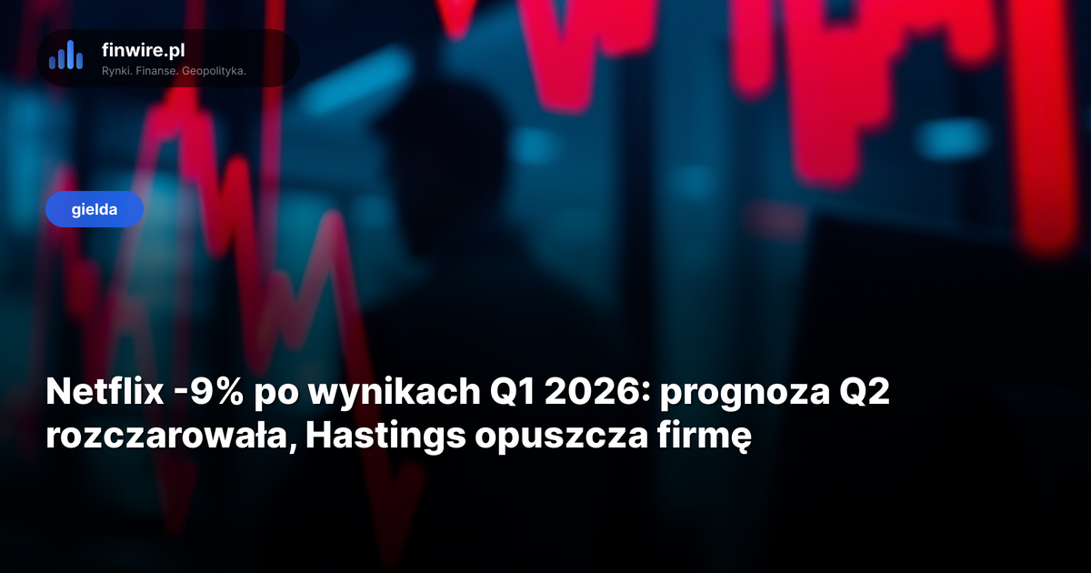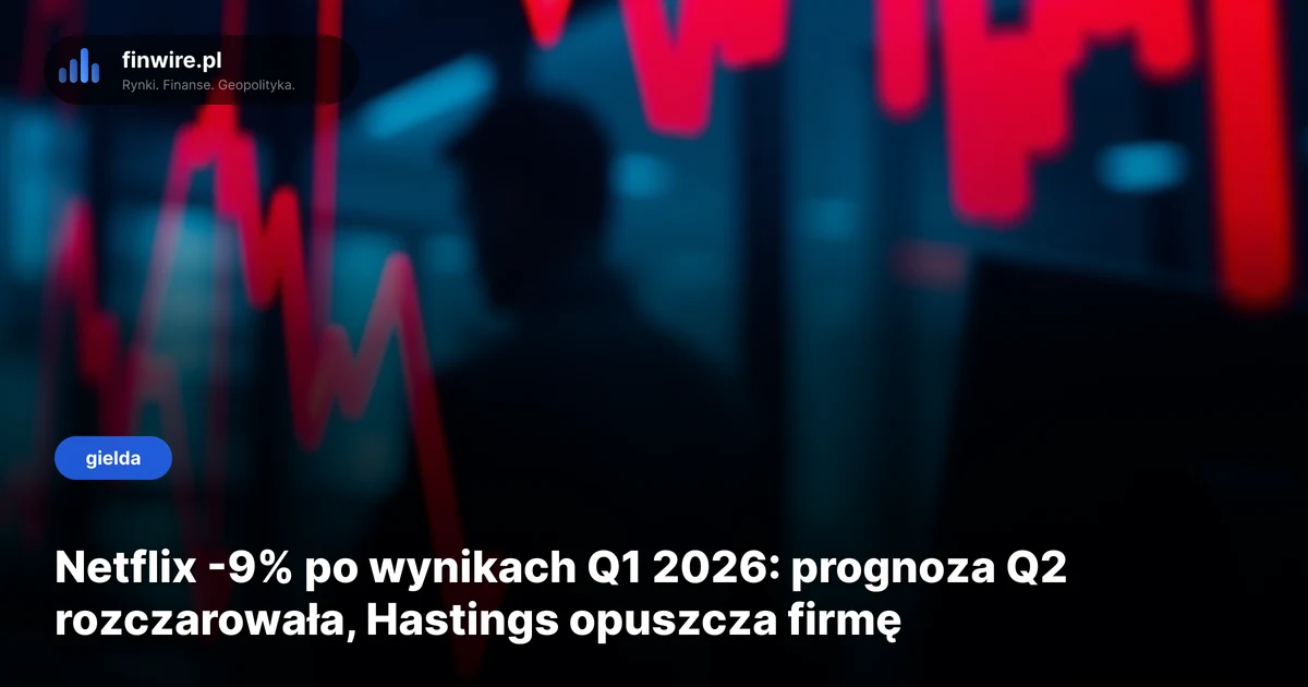 Akcje Netfliksa spadły o około 9% w handlu po sesji 16 kwietnia 2026 - i to nie odejście Reeda Hastingsa zbiło kurs, choć właśnie ta wiadomość przebiła się do nagłówków. Prawdziwym problemem jest prognoza marży operacyjnej na drugi kwartał, która rozczarowała Wall Street mimo solidnego raportu Q1. Stan na 17 kwietnia 2026.