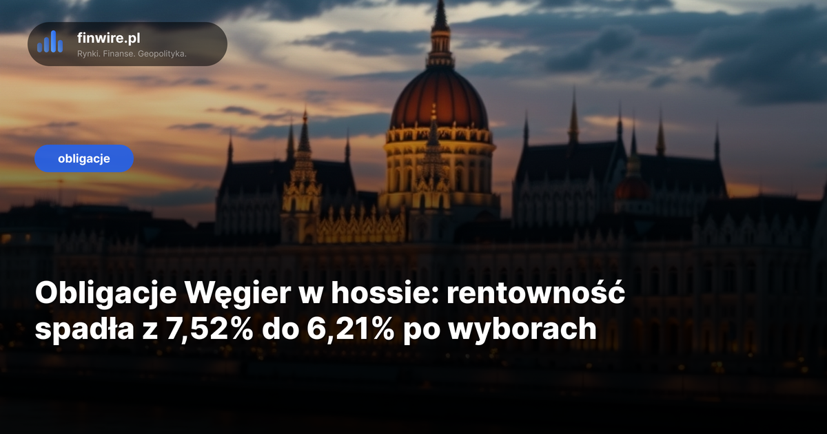 Rentowność 10-letnich obligacji węgierskich spadła z 7,52% do 6,21% w ciągu kilku dni - wg Bloomberga to najmocniejsza korekta od lat. Spread wobec niemieckich bundów znalazł się na pięcioletnim minimum. Stan na 16 kwietnia 2026 r.
