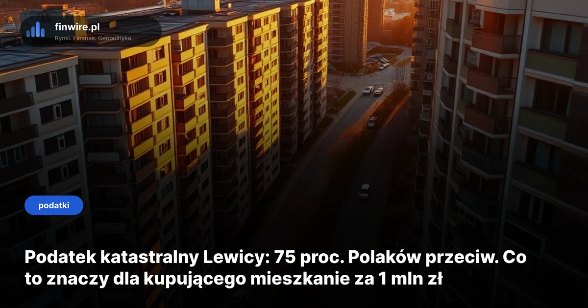 Konsultacje publiczne projektu podatku katastralnego, który złożyła w Sejmie Lewica, zakończyły się druzgocącą oceną. 75 proc. uczestników wypowiedziało się przeciw, a sami wnioskodawcy w uzasadnieniu projektu przyznają wprost, że obciążenie wzrosłoby u praktycznie wszystkich właścicieli nieruchomości. Dla Piotra, który zbiera dokumenty do hipoteki na mieszkanie warte 1 mln zł w Warszawie, to nie kosmetyka. Przy stawce 0,8 proc. od wartości rynkowej dodatkowy podatek wyniósłby 8 000 zł rocznie, czyli ok. 670 zł miesięcznie ponad obecną ratę kredytu.