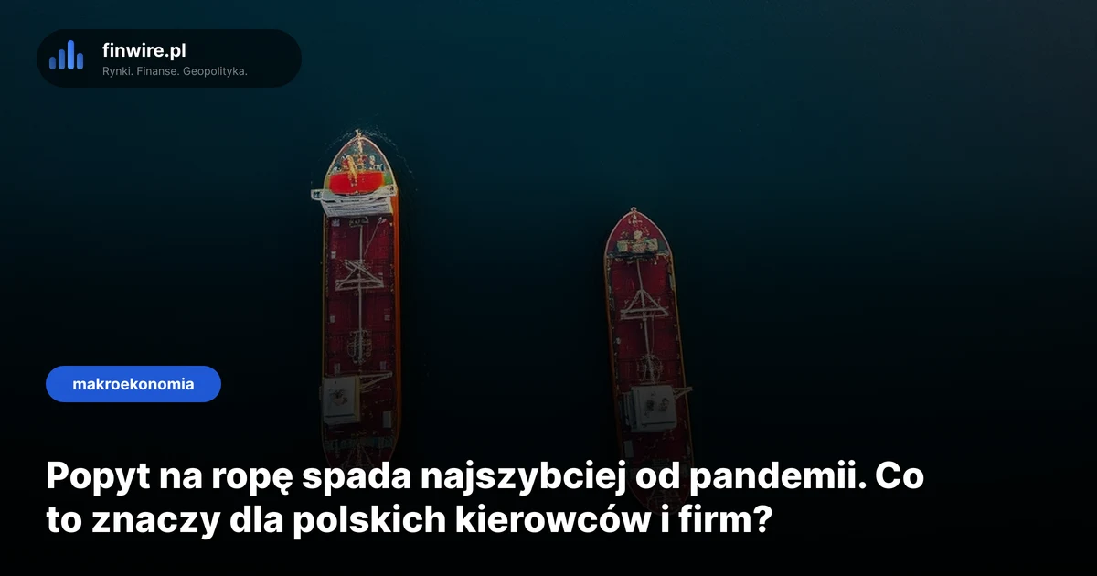Dla firm transportowych i logistycznych to chwila oddechu. Koszty paliwa stanowią 25-35% kosztów operacyjnych w transporcie drogowym. Problem w tym, że słabszy popyt na ropę zwykle oznacza słabszy popyt na wszystko - a to już nie jest dobra wiadomość dla eksporterów.