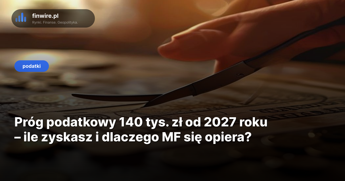 Podwyższenie progu do 140 tys. zł oznacza ok. 2 600 zł mniej podatku rocznie dla osób z dochodem w przedziale 120–140 tys. zł. Koszt dla budżetu: do 9 mld zł.