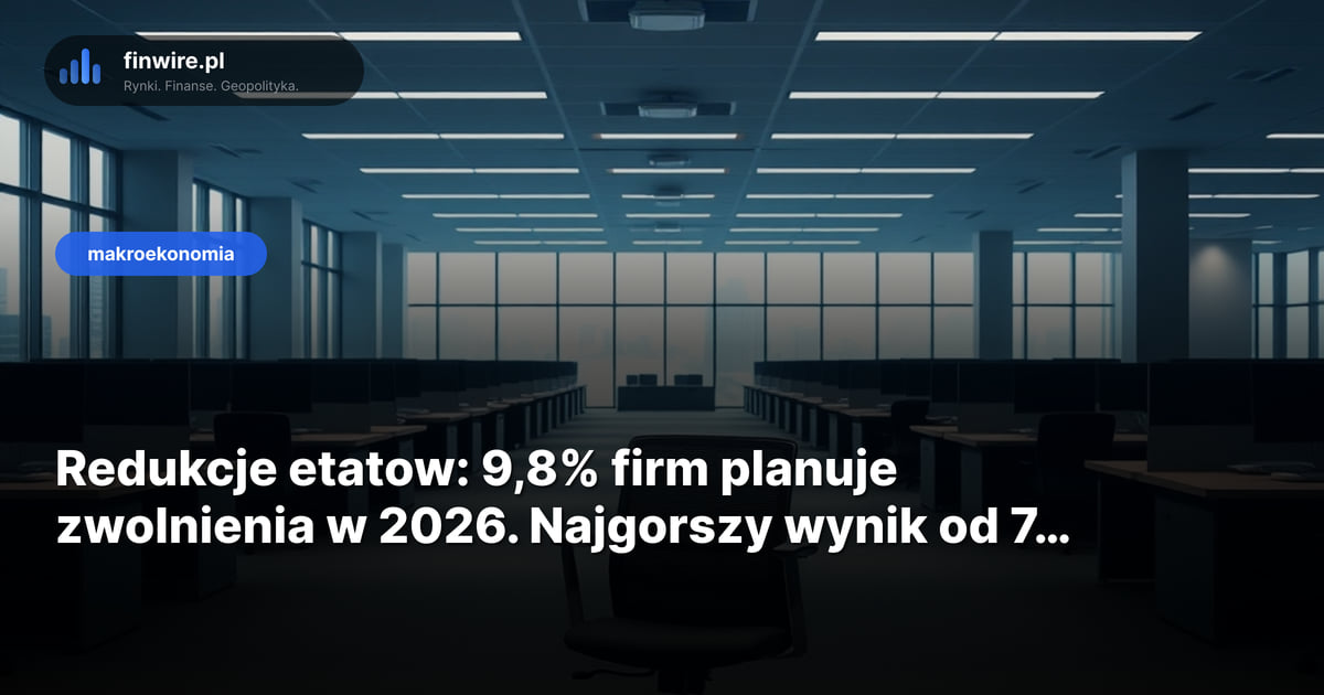 Drugi czynnik to koszty. Inflacja bazowa skoczyła do 2,7% w marcu 2026 roku, powyżej oczekiwań analityków. To sugeruje, że presja płacowa w sektorze usług jeszcze nie wygasła, podczas gdy marże przemysłu już się kurczą. Jeśli firma nie może przerzucić wyższych kosztów pracy na ceny, redukuje liczbę stanowisk. Inaczej nie da rady utrzymać rentowności.