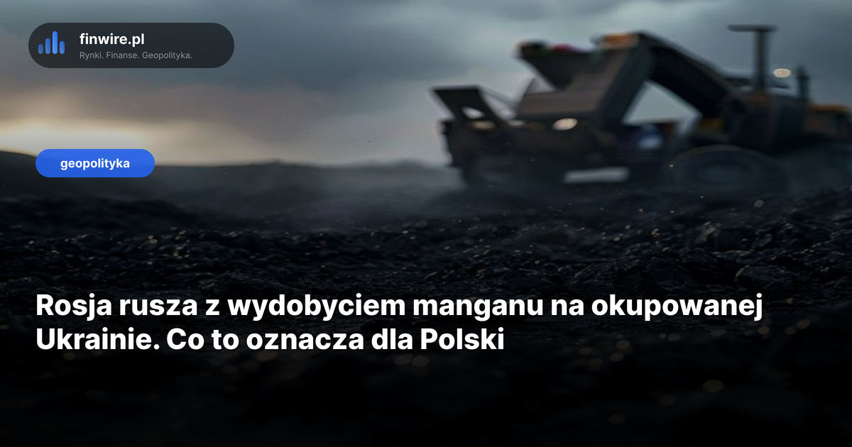 Uruchomienie rosyjskiej produkcji manganu na okupowanej Ukrainie to proces lat, nie miesięcy. Ale sygnał strategiczny, który powinien zaniepokoić europejski przemysł hutniczy - bo UE nadal nie ma wiarygodnej, samowystarczalnej strategii manganowej.