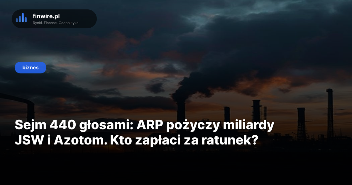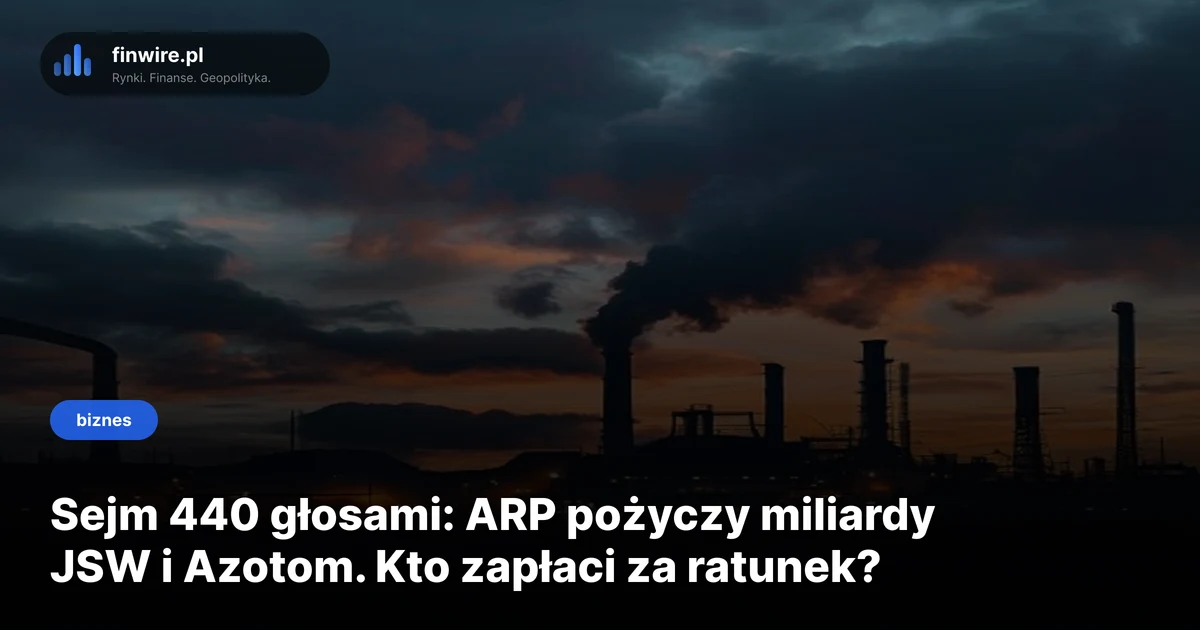 Moim zdaniem to rozsądny kompromis między paraliżem a drogą na skróty. Ale powiedzmy sobie szczerze: ustawa nie rozwiązuje fundamentalnego problemu. JSW i Azoty mają kłopoty nie dlatego, że zabrakło im kredytu, tylko dlatego, że ich modele biznesowe przestały działać w obecnej koniunkturze - spadające ceny węgla koksowego, drogi gaz dla branży nawozowej, konkurencja z importu. Pożyczka kupi czas. Przyczyny nie naprawi. A pytanie, które zostaje na stole, brzmi: co zrobimy, kiedy te miliardy się skończą, a kopalnie i fabryki nawozów nadal będą pod kreską?