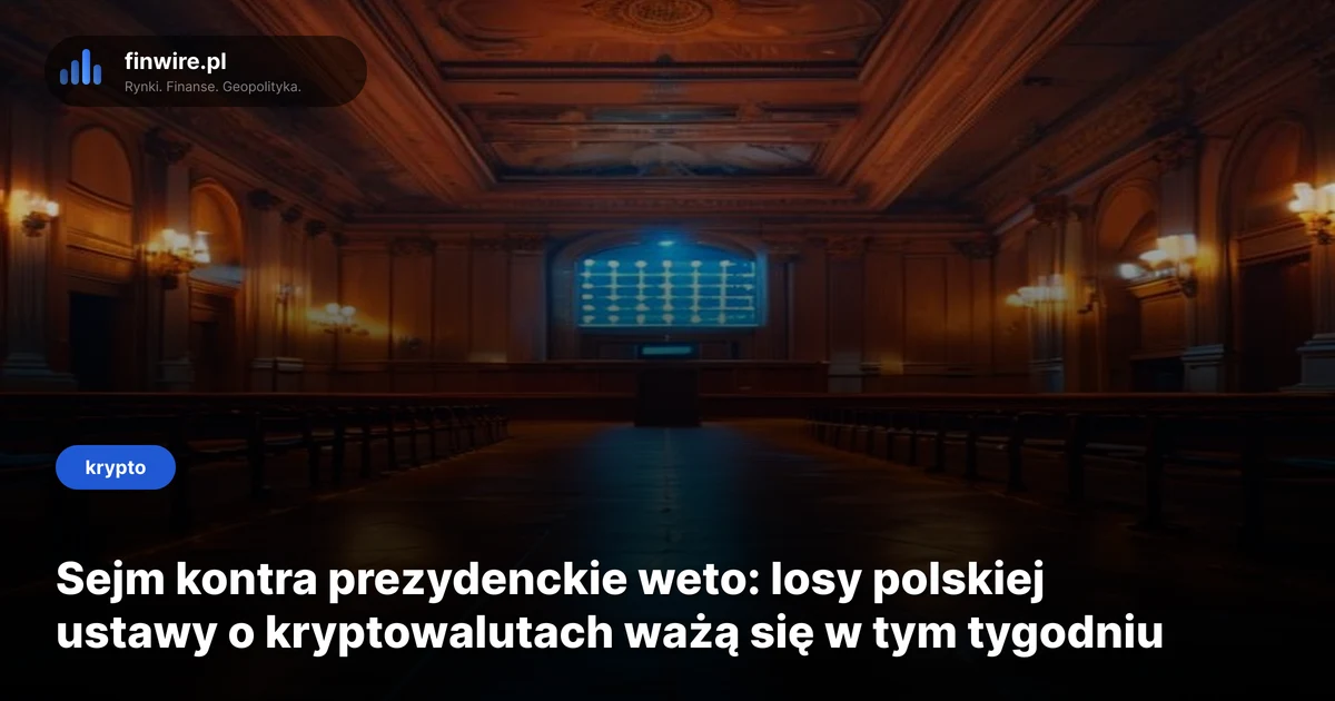 276 głosów. Tyle potrzeba, żeby Sejm obalił prezydenckie weto do ustawy o nadzorze nad rynkiem kryptoaktywów. Stan na kwiecień 2026 - Polska wciąż nie wdrożyła unijnego rozporządzenia MiCA, które w pełni obowiązuje od 30 grudnia 2024 roku. Marszałek Sejmu Włodzimierz Czarzasty potwierdził, że debata odbędzie się w czwartek, a głosowanie w piątek.