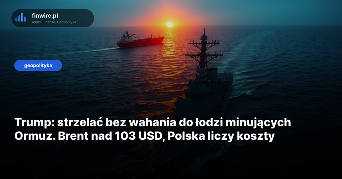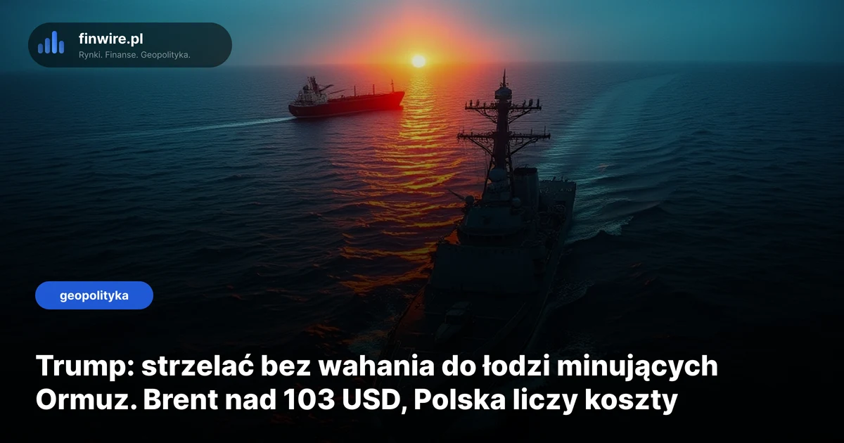 „Shoot and kill” - tak brzmi polecenie Donalda Trumpa dla US Navy z czwartku 23 kwietnia 2026 roku. Każda łódź podkładająca miny w cieśninie Ormuz ma być niszczona bez wahania. Brent odpowiedział skokiem do 103,38 USD za baryłkę, a polski kierowca już liczy, ile to będzie go kosztować. Dane aktualne na 23 kwietnia 2026.