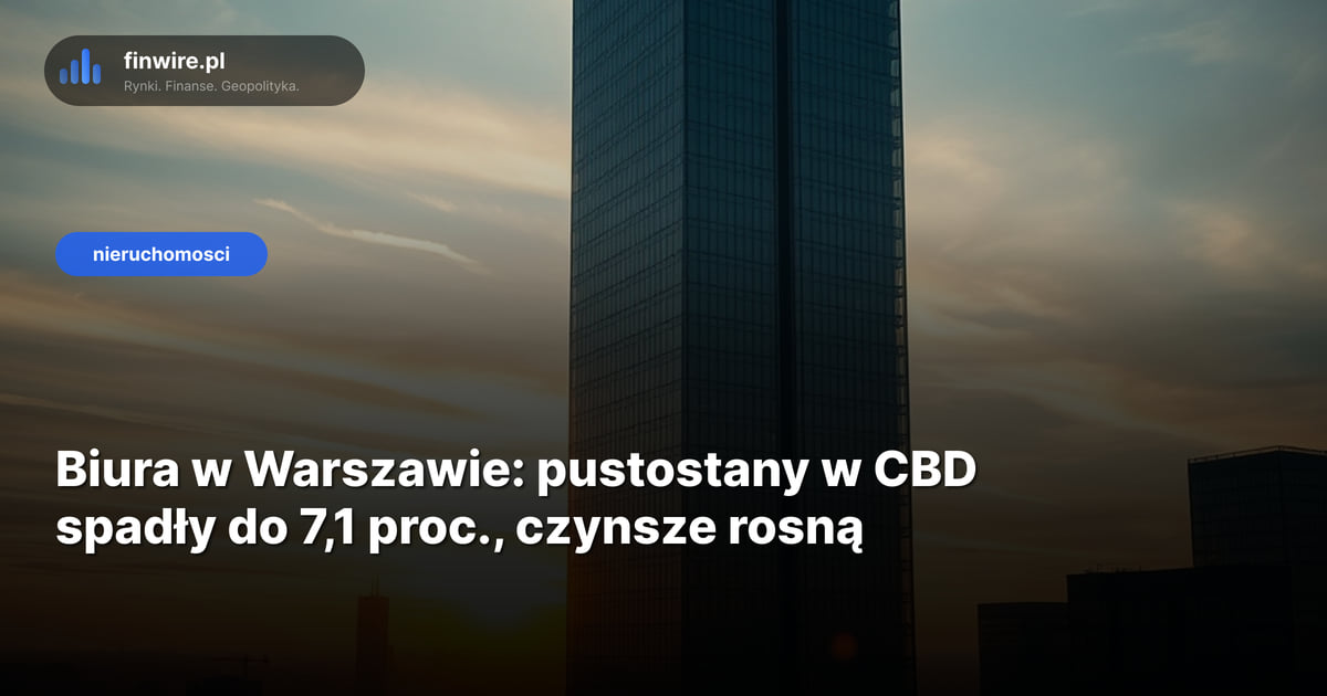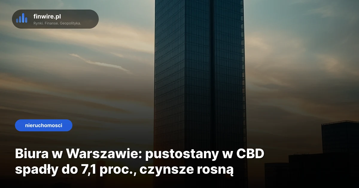 Warszawski rynek biurowy wszedł w fazę, w której to wynajmujący dyktują warunki. Pustostany w Central Business District spadły do 7,1 proc. na koniec 2025 r. – wynika z danych CBRE. To spadek o 3,9 pkt proc. rok do roku, jeden z najmocniejszych w Europie Środkowej. Stan na kwiecień 2026.