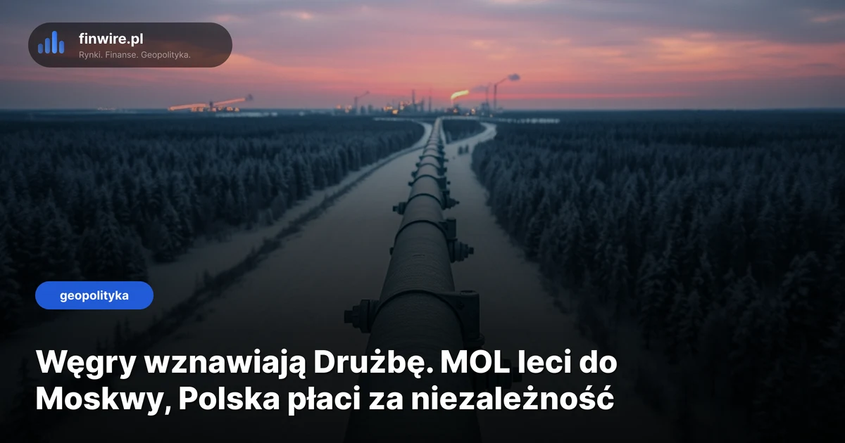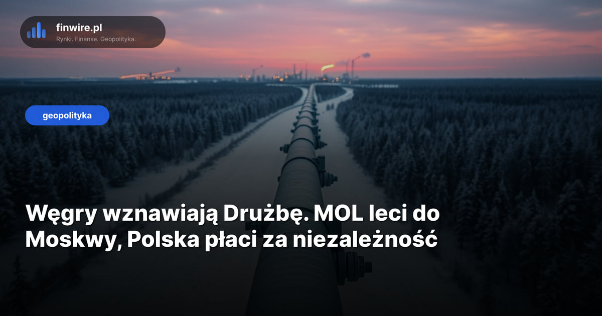 Zsolt Hernadi, prezes węgierskiego koncernu MOL, wybiera się do Moskwy. Temat rozmów - wznowienie i zabezpieczenie dostaw ropy rurociągiem Przyjaźń. Kwiecień 2026 i to już nie jest zarządzanie kryzysowe. To stała strategia Budapesztu, który w odróżnieniu od Warszawy nie zamierza rezygnować z rosyjskiego surowca.