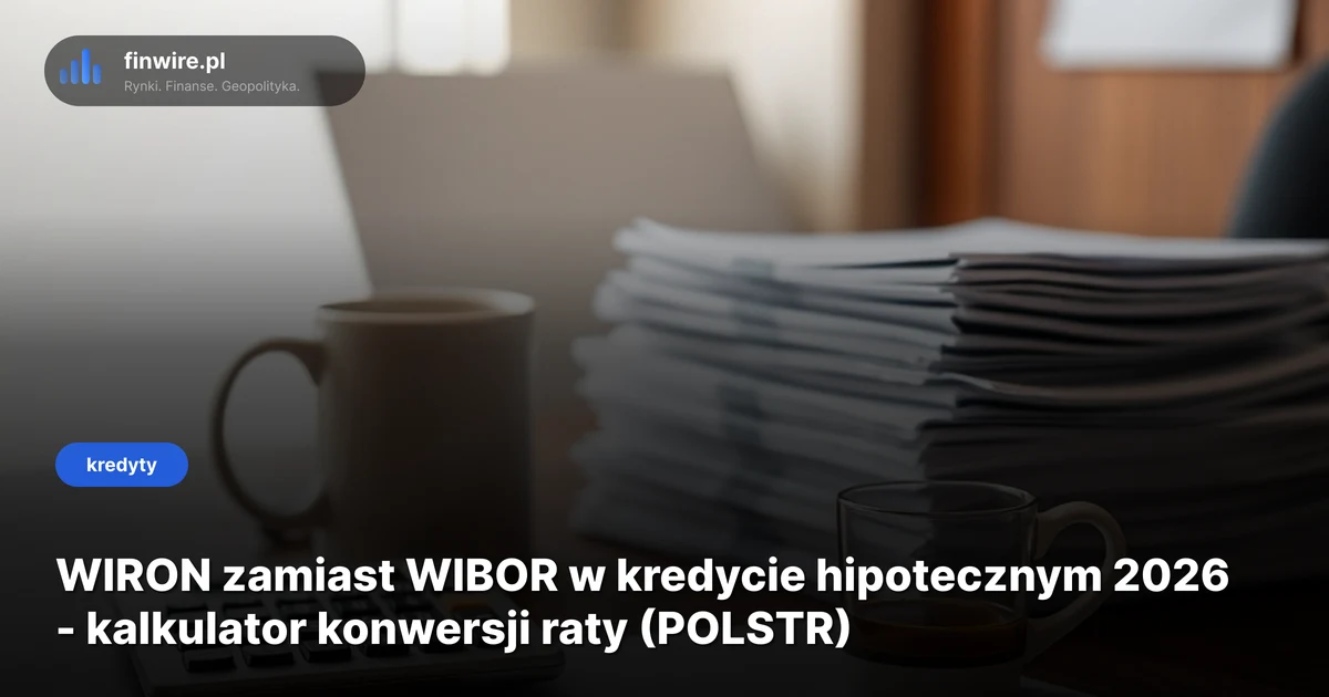 Stan na kwiecień 2026: wszystkie nowe kredyty hipoteczne udzielane od 1 stycznia 2026 muszą być oparte o nowy wskaźnik POLSTR (zastąpił niedoszłego następcę WIRON). Stare kredyty z WIBOR-em mają zostać skonwertowane do końca 2027 roku - tak wynika z mapy drogowej Komitetu Sterującego Narodowej Grupy Roboczej, knf.gov.pl/" rel="noopener" target="_blank">której nadzór sprawuje KNF. Co to oznacza dla Piotra i 2,3 mln Polaków spłacających kredyty hipoteczne w PLN (bik.pl/" rel="noopener nofollow" target="_blank">dane BIK, marzec 2026)? Tłumaczę krok po kroku, plus pokazuję jak policzyć ratę po konwersji w naszym kalkulatorze kredytu hipotecznego.