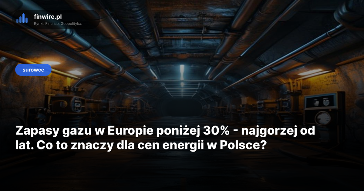 Niecałe 30% - tyle gazu ziemnego zostało w europejskich magazynach według najnowszych danych Gas Infrastructure Europe. Stan na kwiecień 2026. Dla porównania: średnia pięcioletnia na tę porę roku to ponad 40%. Różnica - ponad 10 punktów procentowych - niby niewiele, ale w przeliczeniu na ceny robi się z tego poważna kwota.